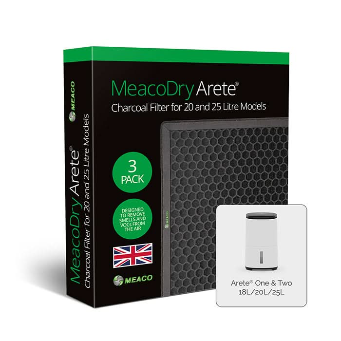 Every Arete® dehumidifier comes with a free H13 HEPA filter so you can see first hand just how good it is. If you want to always have cleaner, fresher air in your home this filter will have to be replaced roughly every 3 months. You have the choice of replacing this filter with our active charcoal filters or continue using our H13 HEPA filters. On this page you can purchase a pack of 3 replacement active charcoal filters for your Arete® 25L or 20L; alternatively you can take a look at our pack of 3 H13 HEPA filters to see if they will suit your needs better. If you can't make your mind up, you can use both types of filters and swap them around whenever you want to.