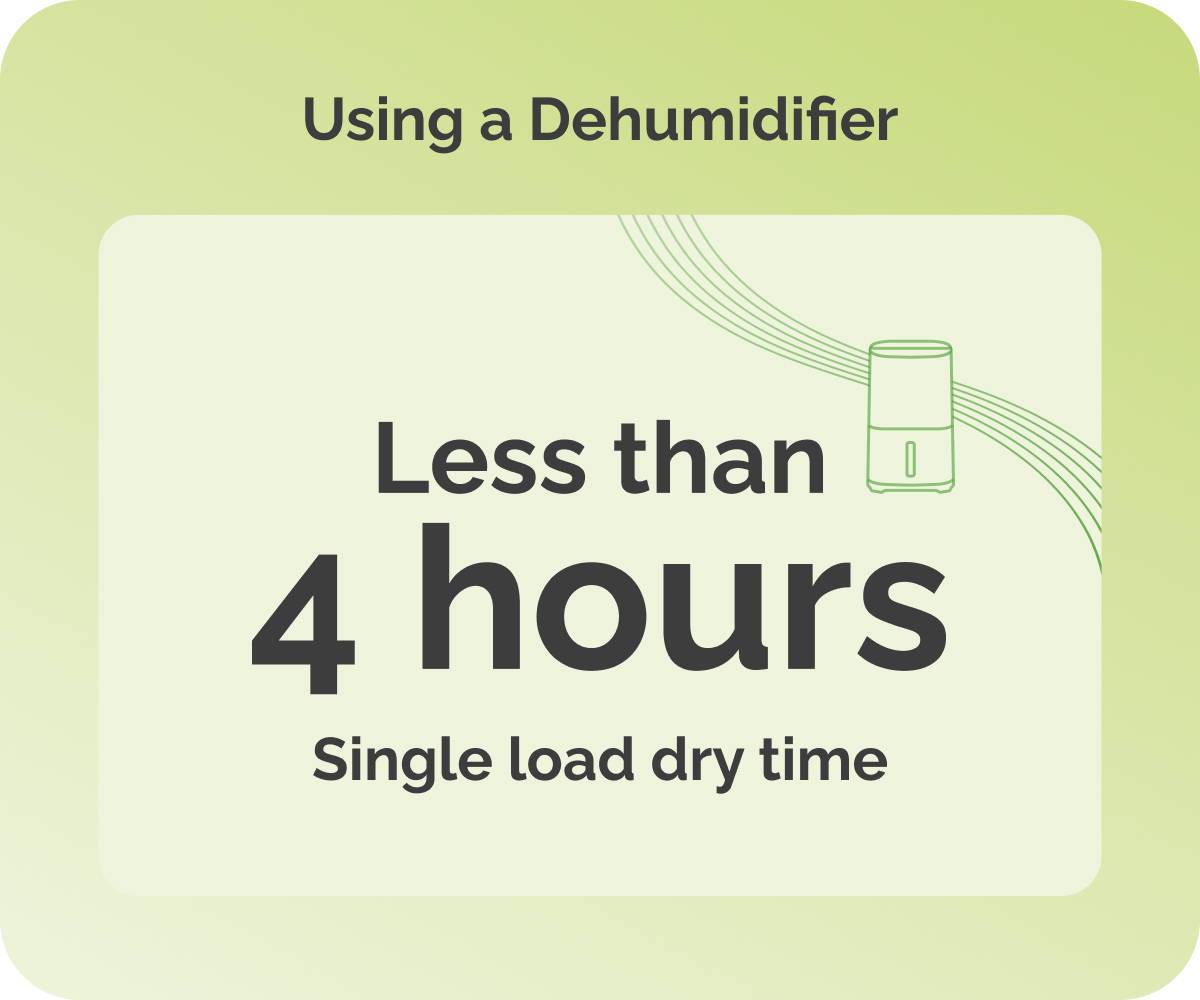 The result? A full load of laundry dry in as little as 1 hour 40 minutes when optimised with a fan, at a fraction of the cost of a tumble dryer, and without leaving your home feeling damp.