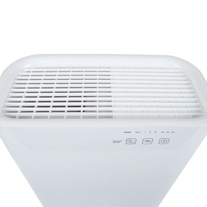This air purifier uses a multi-stage air cleaning system. The room air first moves across the pre-filter to remove larger particles such as dust. The HEPA filter removes smaller allergens, then the charcoal filter removes smells and volatile organic compounds (VOCs) from the air before finally, the ultraviolet light works in conjunction with the photocatalyst titanium dioxide coating to remove bacteria and viruses from the air.