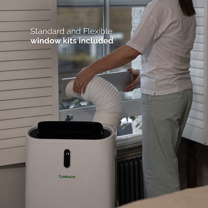 The MeacoCool comes with two types of window kits: the standard window kit and the flexible window kit. The standard window kit is suitable for sash windows, whereas the flexible window kit is suitable for all types of windows. The use of a window kit prevents warm air from outside entering the room, making the cooling more efficient. We’ve provided two types of window kits to ensure the air conditioner can be set up at any window in your home, without you having to purchase additional extras.