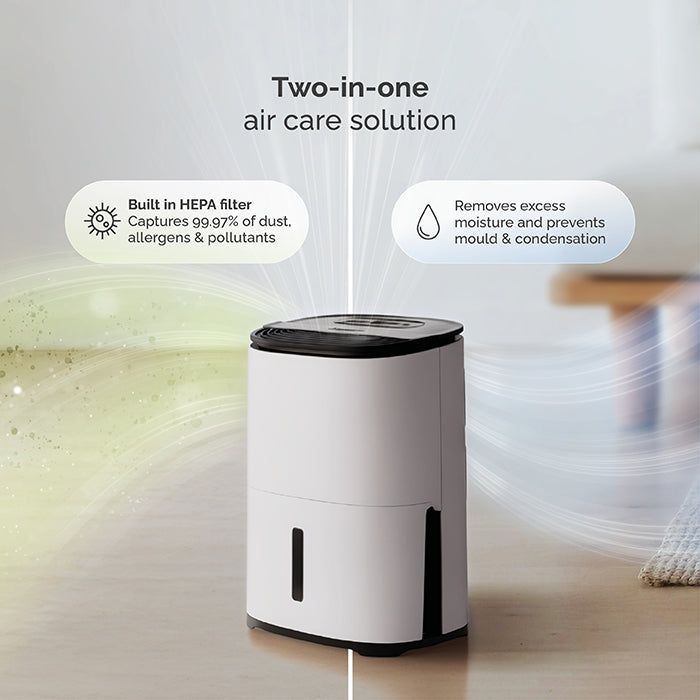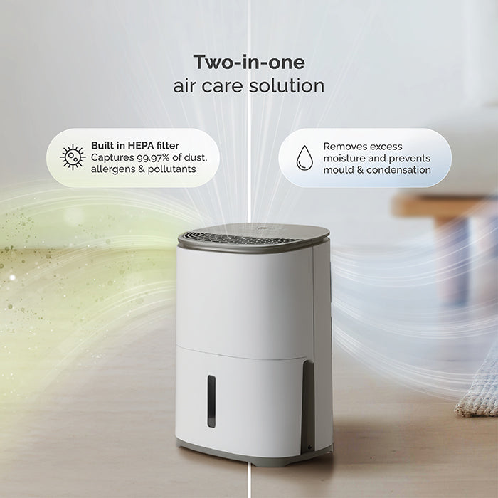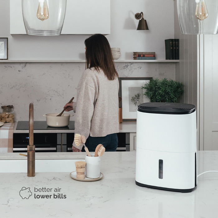 The smart, quiet and compact dehumidifier made for student life, shared houses and single rooms