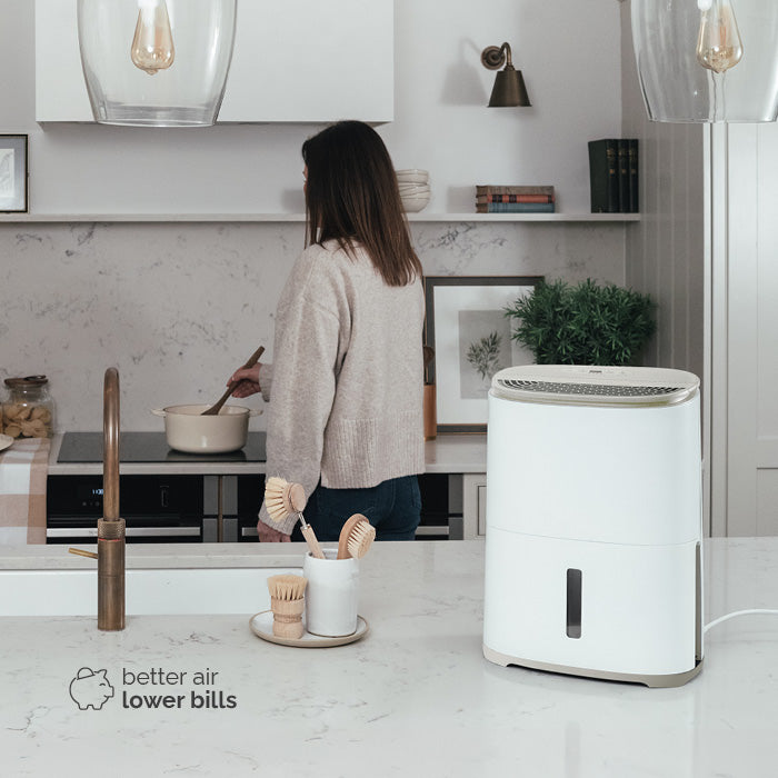 Is floor space at a premium? Struggling with damp in an already busy room? This compact, whisper-quiet and efficient dehumidifier fits easily into any room or on a countertop.