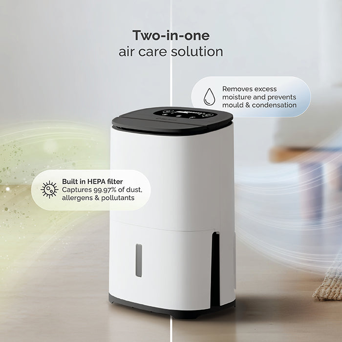 Arete® Two dehumidifiers also have the option of selecting the dedicated Air Purification Mode. This mode for when you want to promote airflow through the HEPA filter to clean the room air, for example, if you struggle with hay fever during the summer months, but don't need dehumidification.