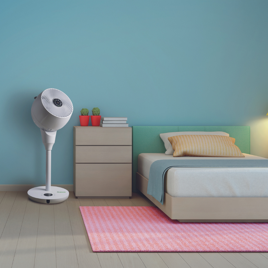 The perfectly quiet way to keep your bedroom cool this summer with our height-adjustable pedestal fan