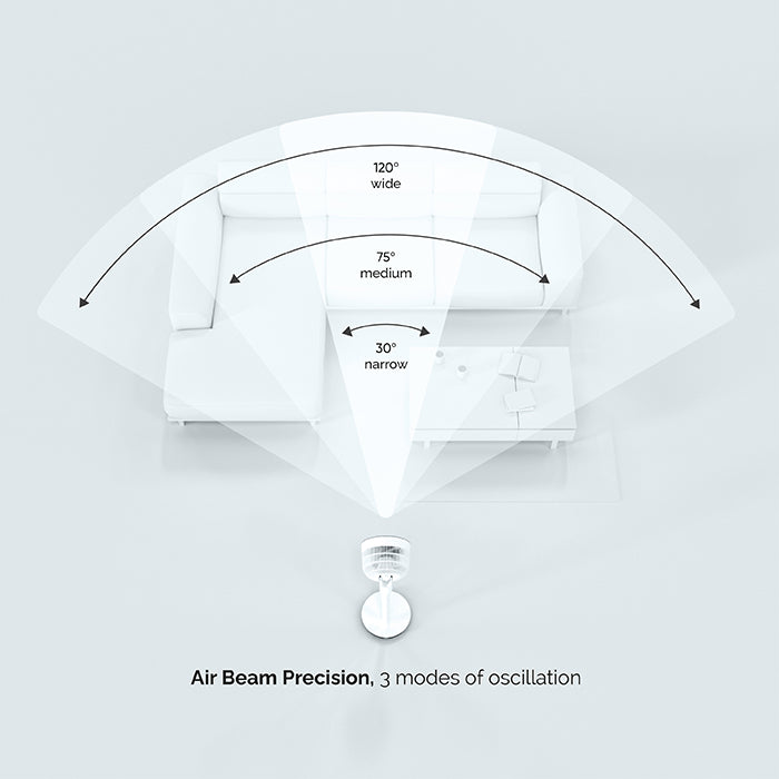 Featuring Air Beam Precision, Sefte® offers 6 ranges of both vertical and horizontal oscillation. This allows you to direct airflow precisely where you need it, whether it's a gentle breeze over your bed or cooling for the entire room. Choose between narrow, medium or wide for your perfect cooling solution.