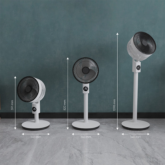 Featuring Pole Power Technology, Sefte® offers three adjustable height settings. This seamlessly transforms from a table fan to a medium-height or full sized pedestal fan. This versatility creates an optimal cooling fan, wherever you need it.