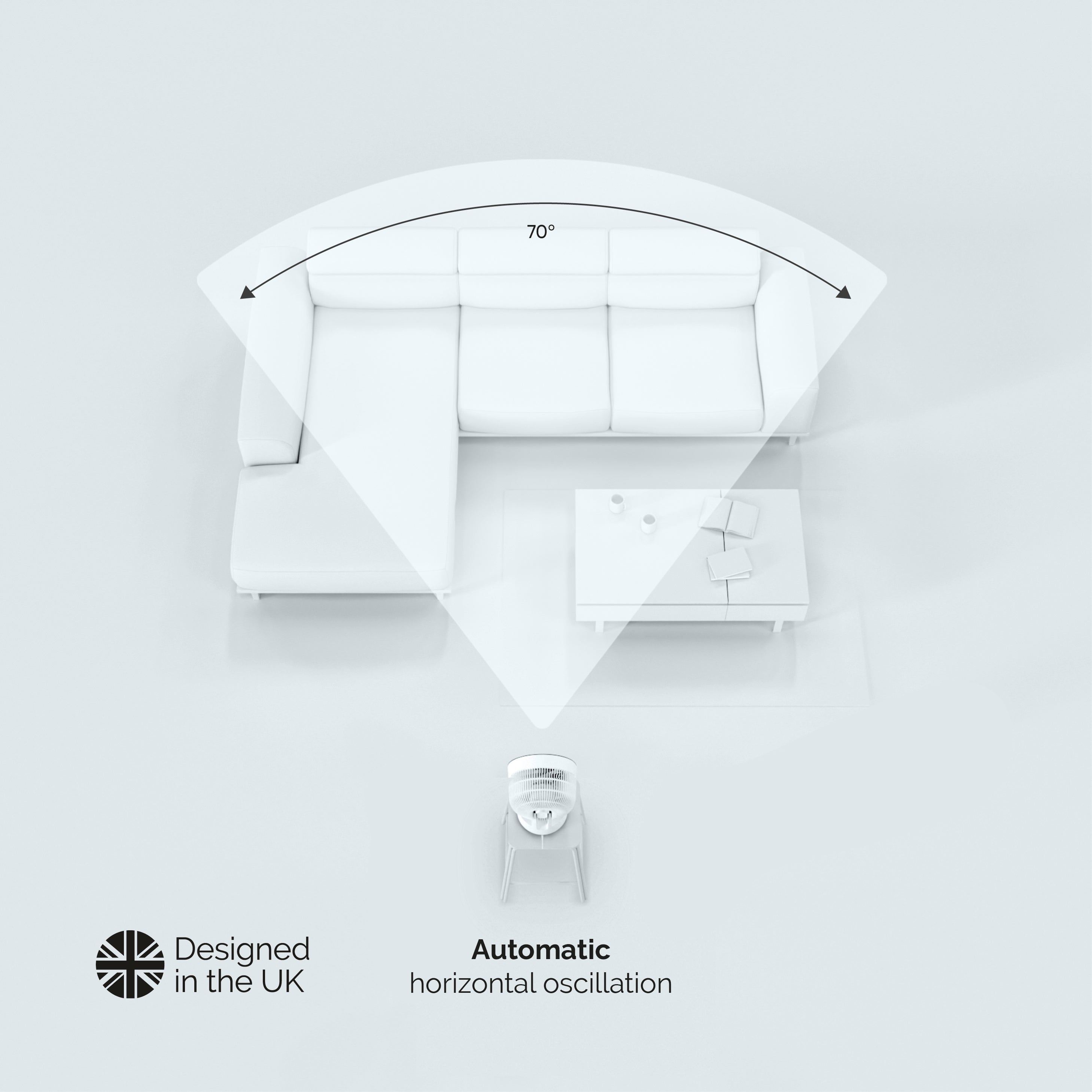 Starting at just 27 dB, the Sefte® 8” is whisper quiet - perfect for bedside tables, nurseries, home offices, and anywhere silence matters. It’s the same ultra-quiet technology as our award-winning 10” model, but in a more compact, travel-ready size.