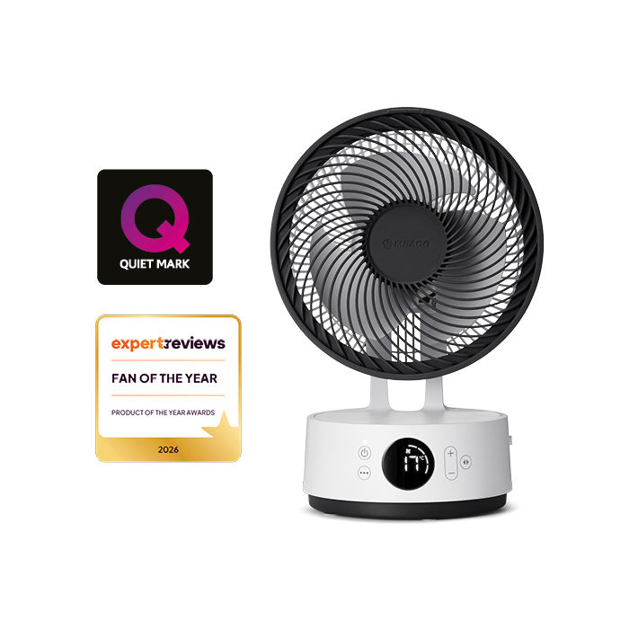 With 12 fan speeds to choose from, you can fine-tune the airflow to your exact comfort level. As this is a smaller fan, we've specially adapted the lower speed settings to be even gentler, so it’s perfect for when the fan is close by, like on a bedside table or home office desk. Enjoy a soft, cooling breeze that never feels intrusive, even at arm’s length.